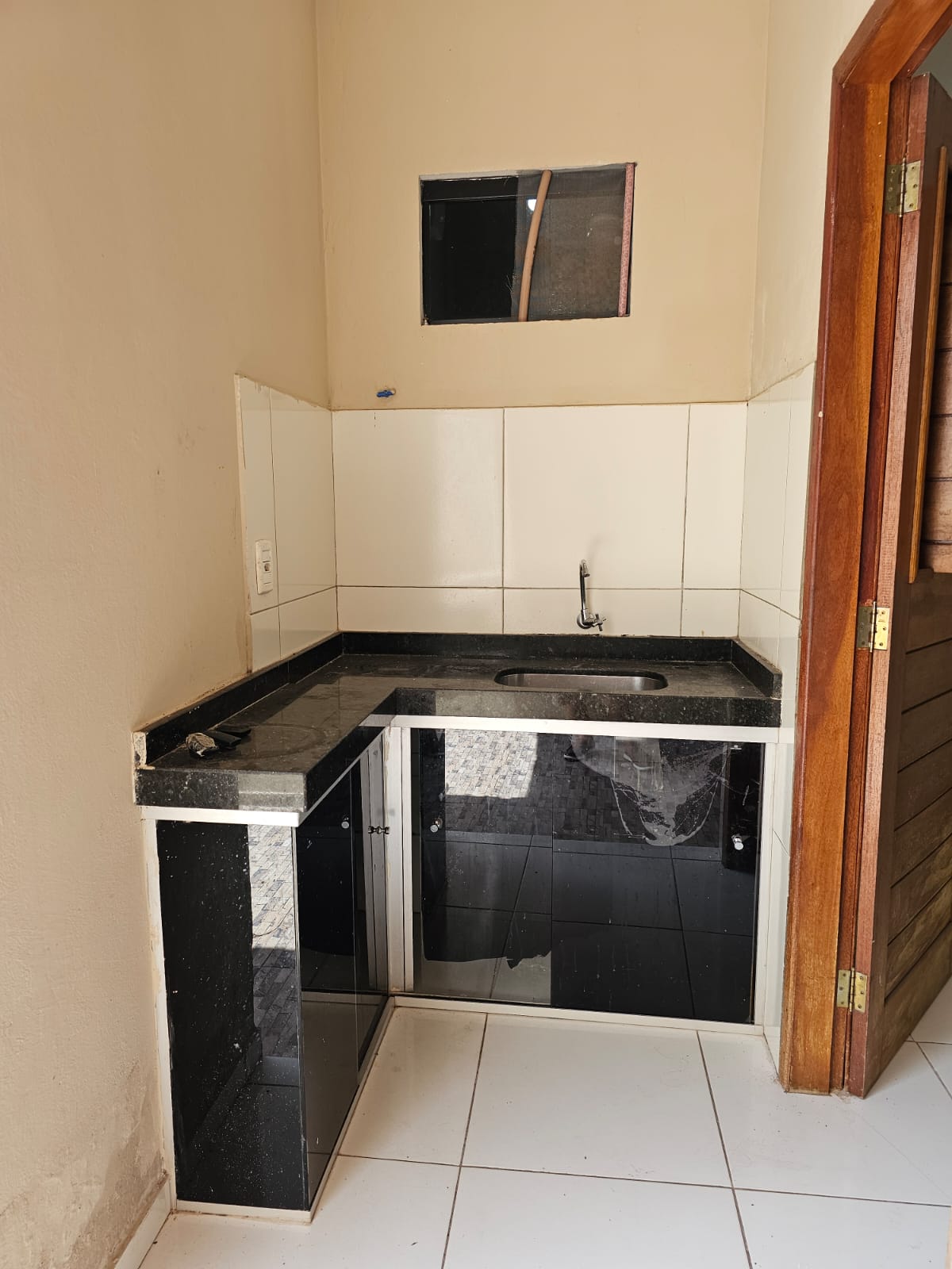 Possui: 02 quartos sociais; 01 suíte; 01 banheiro social 01 sala para dois ambientes; 01 cozinha; 01 área de serviço; 01 garagem.