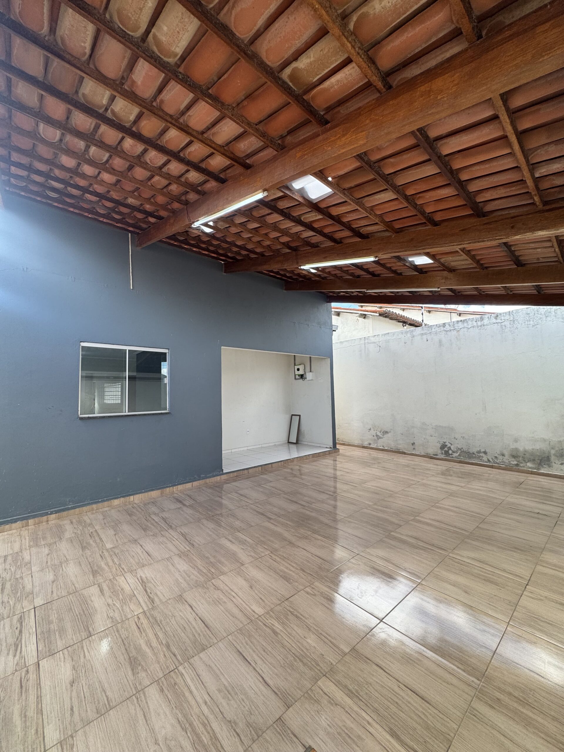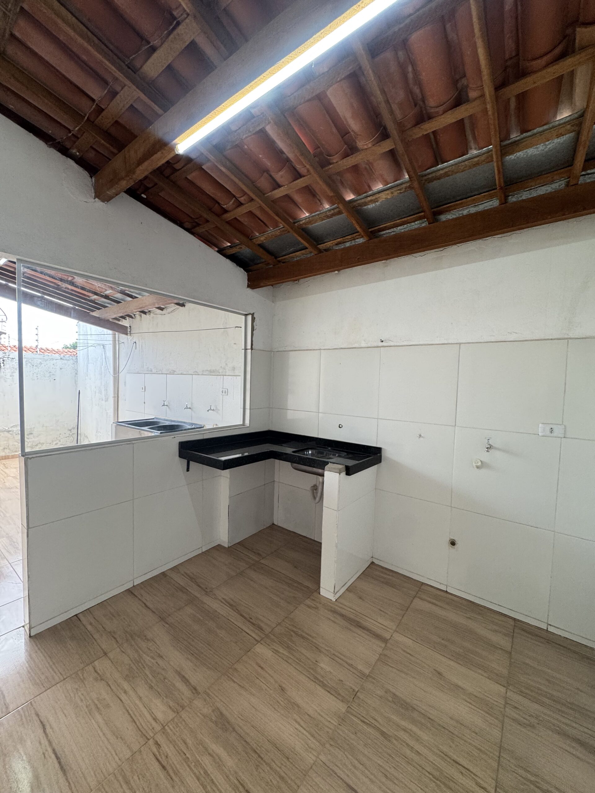 02 quartos (01 com banheiro reversível para o banheiro social); sala grande; cozinha ampla; garagem coberta; área de serviço coberta; despensa; área coberta com pia (pode ser segunda cozinha); cisterna.