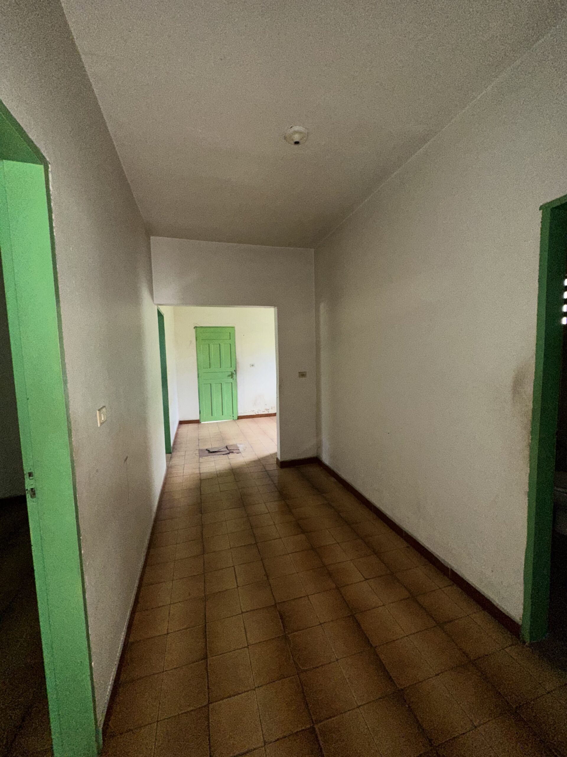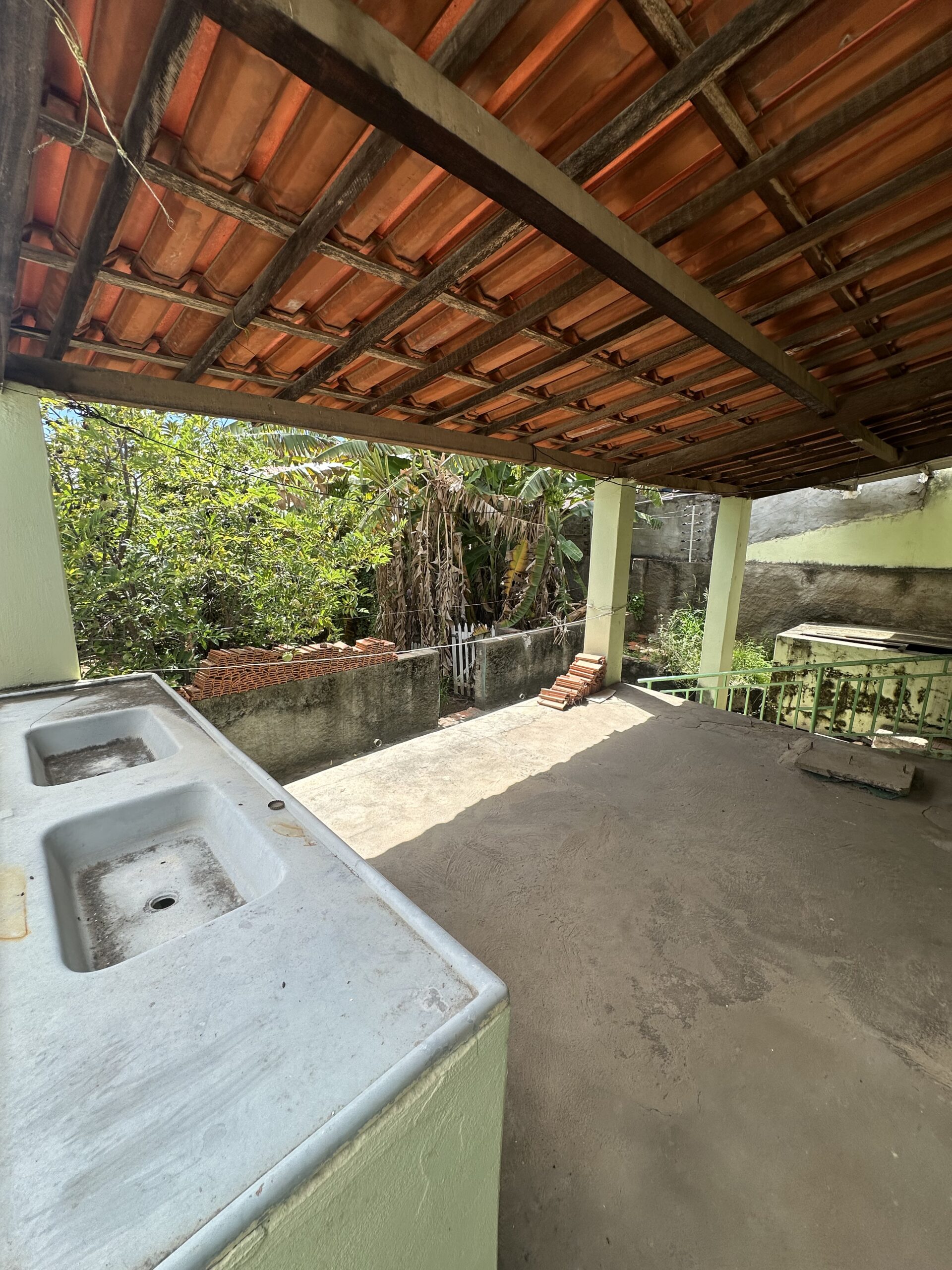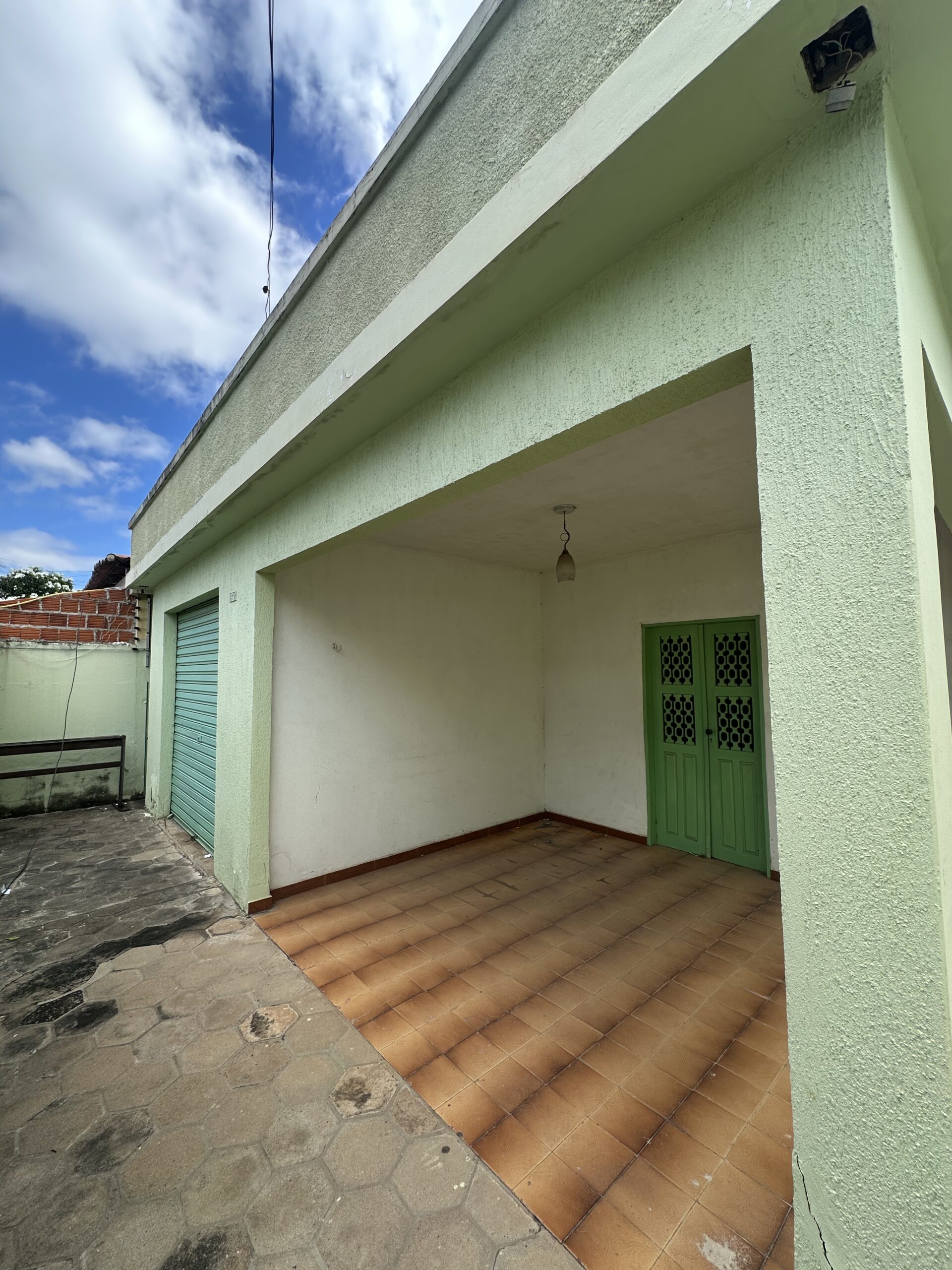 03 quartos; Sala de estar; Sala de jantar; Cozinha; Banheiro social; Garagem; Varanda; 02 corredores laterais; Área de serviço; Quintal amplo
