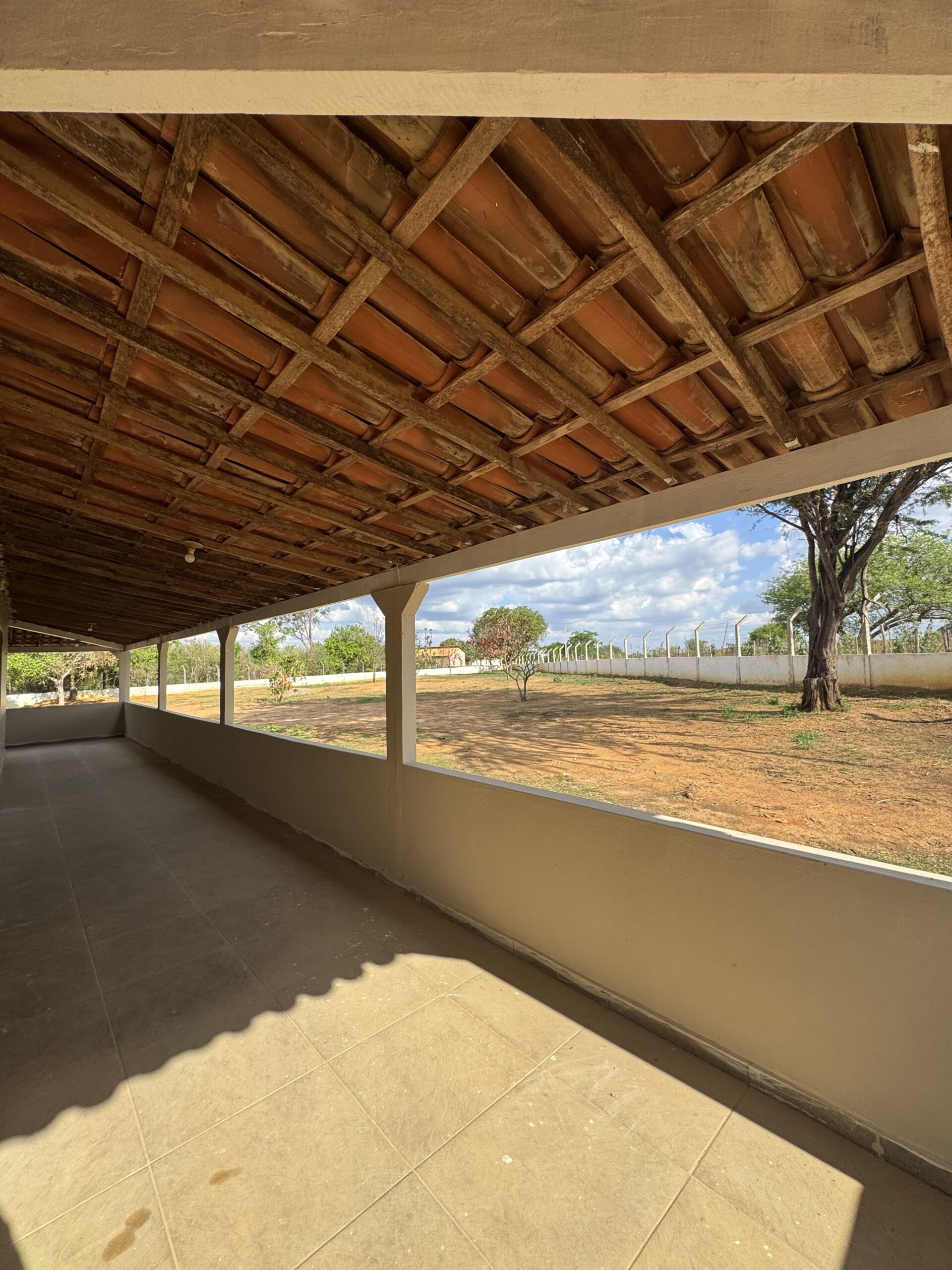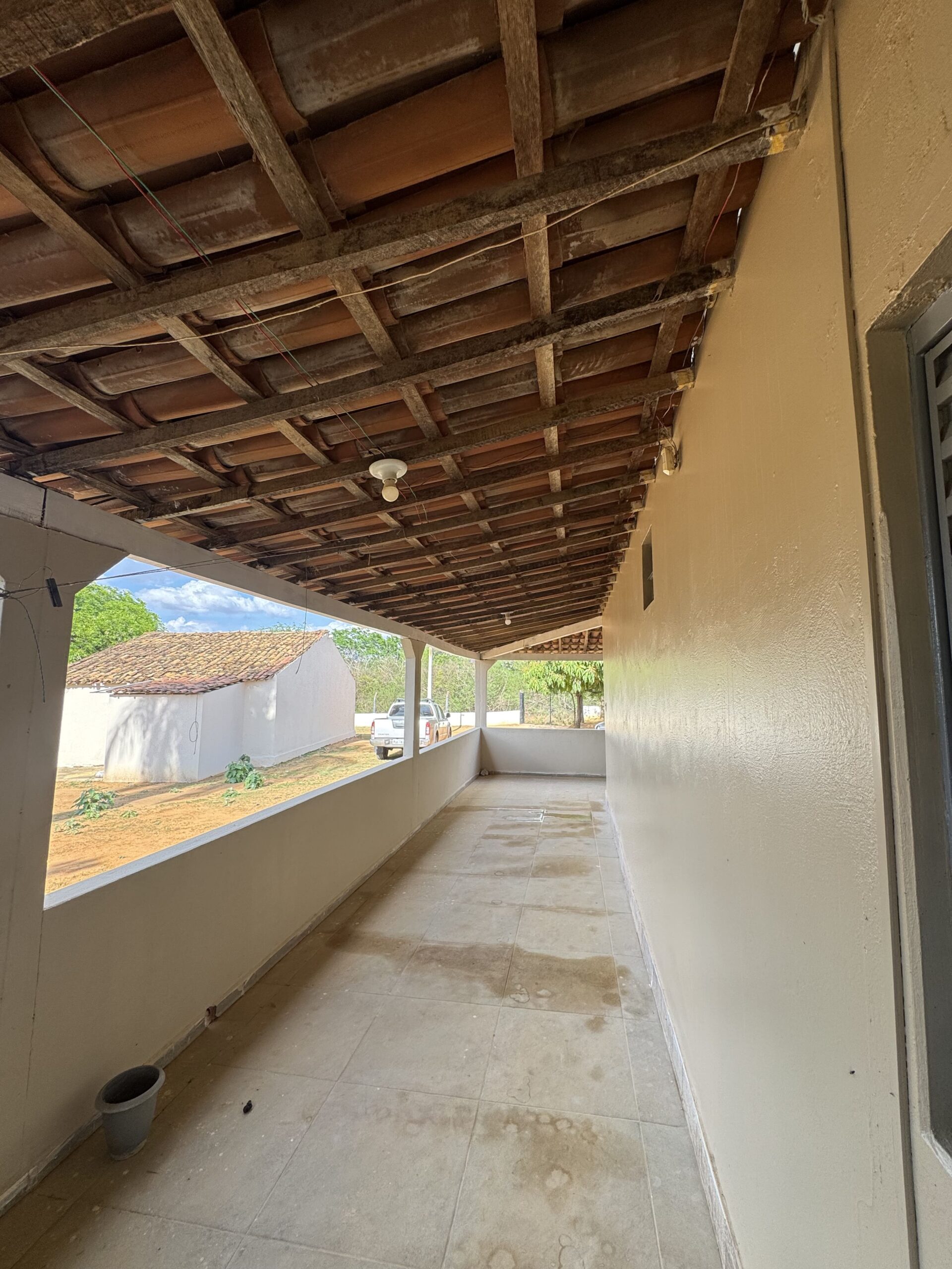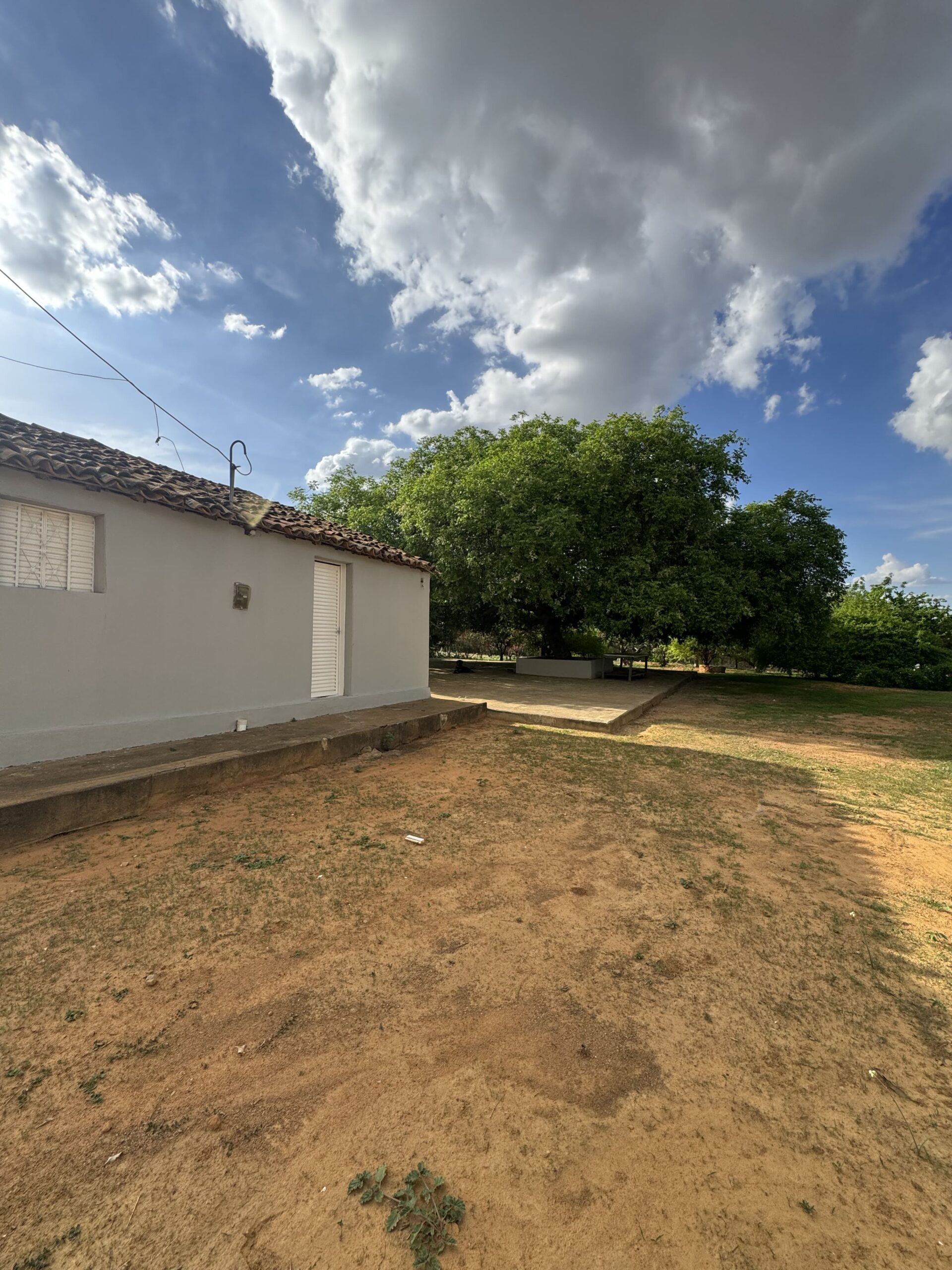 Casa Principal: 03 quartos; 01 banheiro social; 01 sala de estar; 01 sala de jantar; 01 cozinha; 01 área de serviço; Casa toda no alpendre. Possui uma segunda casa de apoio. Terreno: Cisterna; Poço artesiano; 4 tarefas de terra (aproximadamente 12.100m²); Chácara toda cercada.