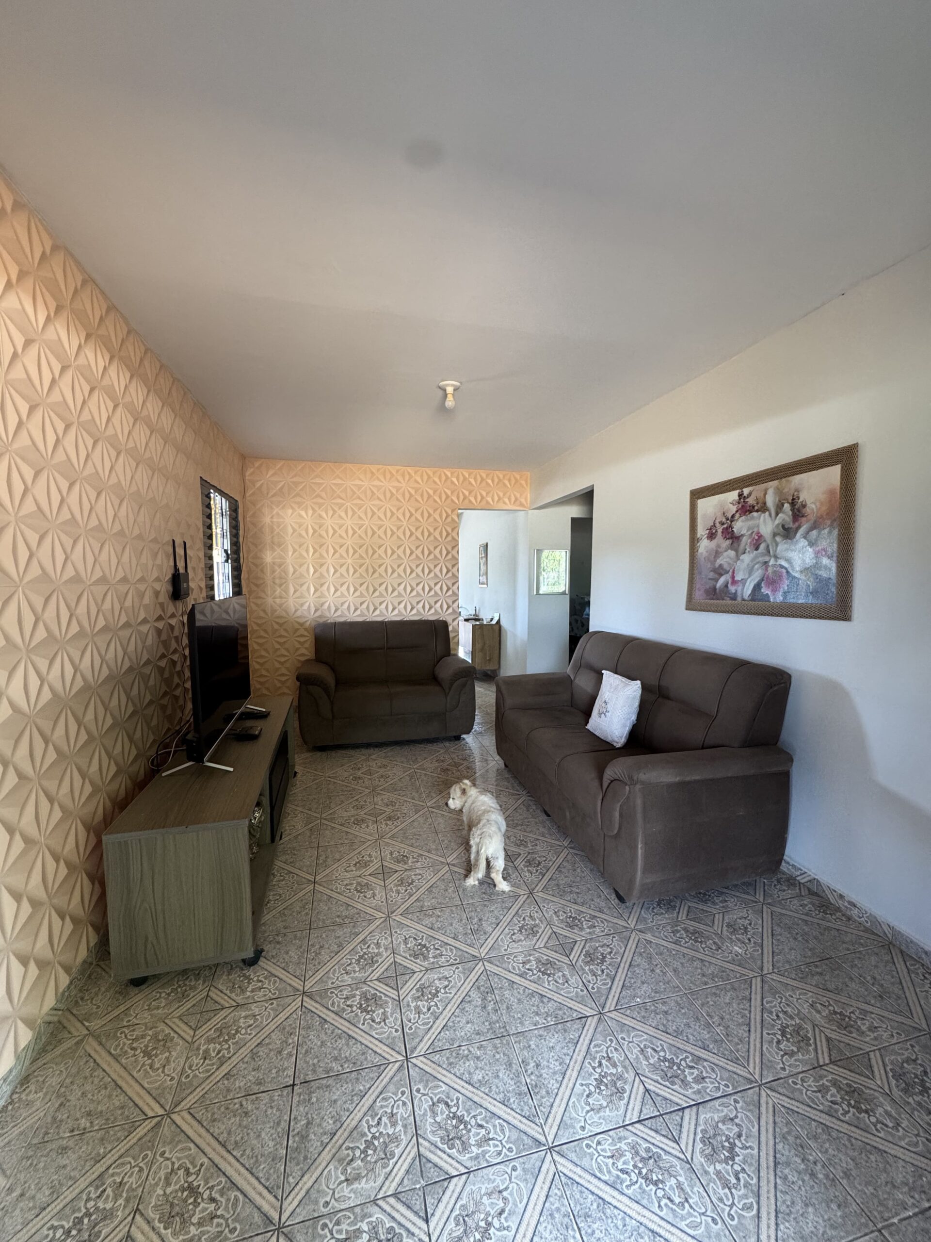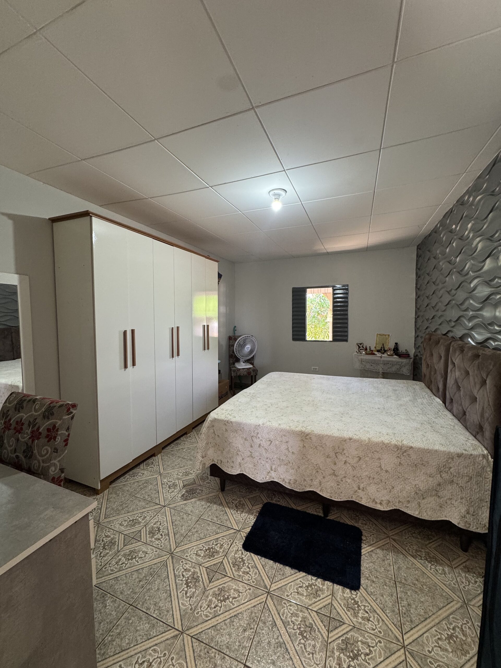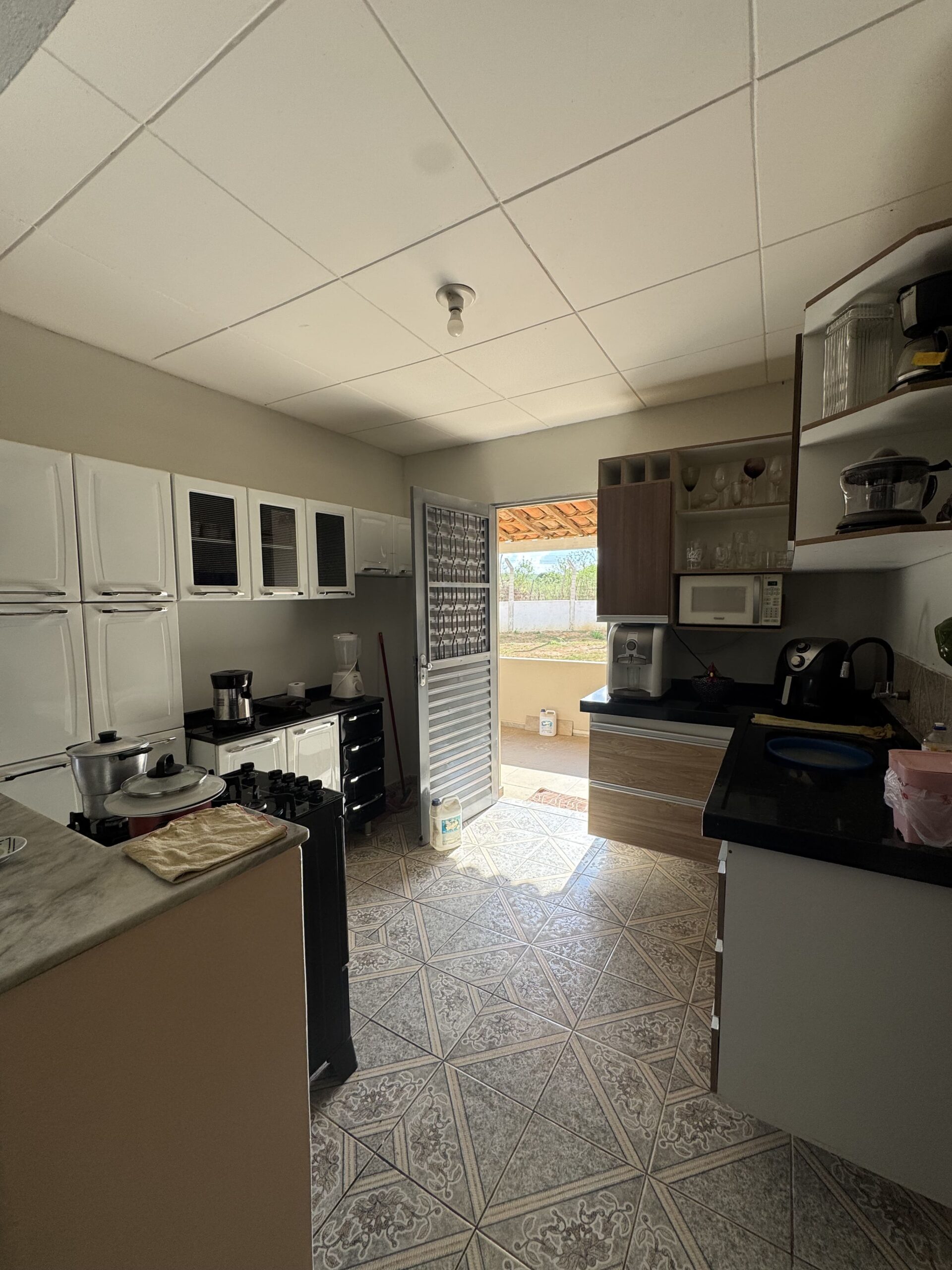 Casa Principal: 03 quartos; 01 banheiro social; 01 sala de estar; 01 sala de jantar; 01 cozinha; 01 área de serviço; Casa toda no alpendre. Possui uma segunda casa de apoio. Terreno: Cisterna; Poço artesiano; 4 tarefas de terra (aproximadamente 12.100m²); Chácara toda cercada.